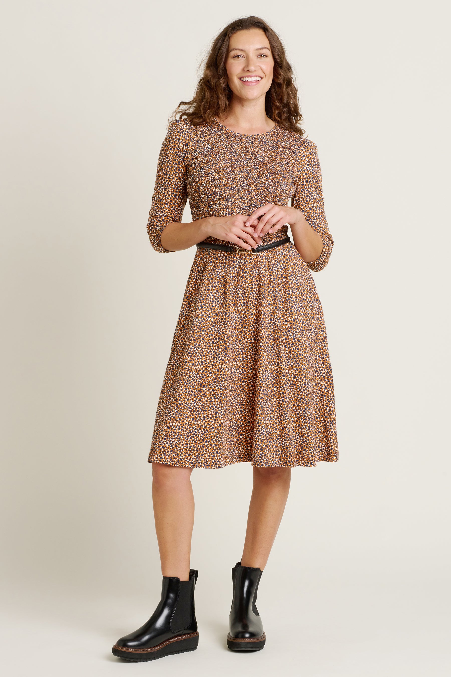 Ditch the florals and opt for an abstract, Painted Spot Dress. Featuring ¾ sleeves, its shirred chest panels are supportive while its a-line skirt is more free flowing. Pair with a denim jacket and white trainers or boots and a cardi when it’s cooler.