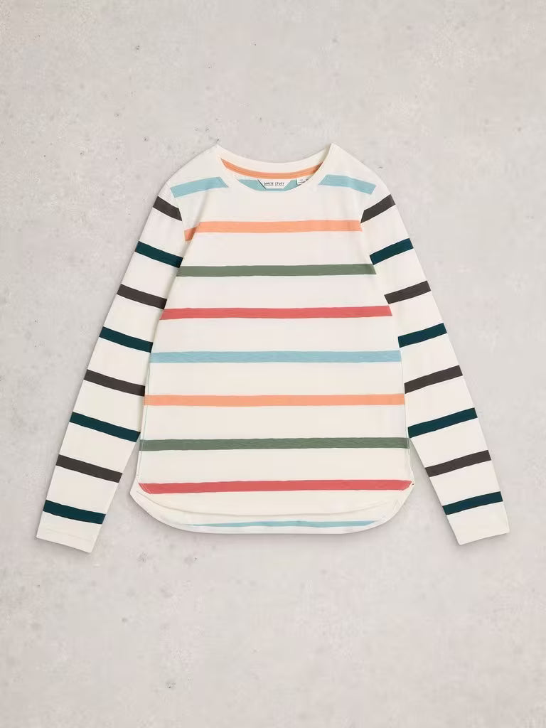 White Stuff Clara Long Sleeved Striped Tee in Ivory Multi