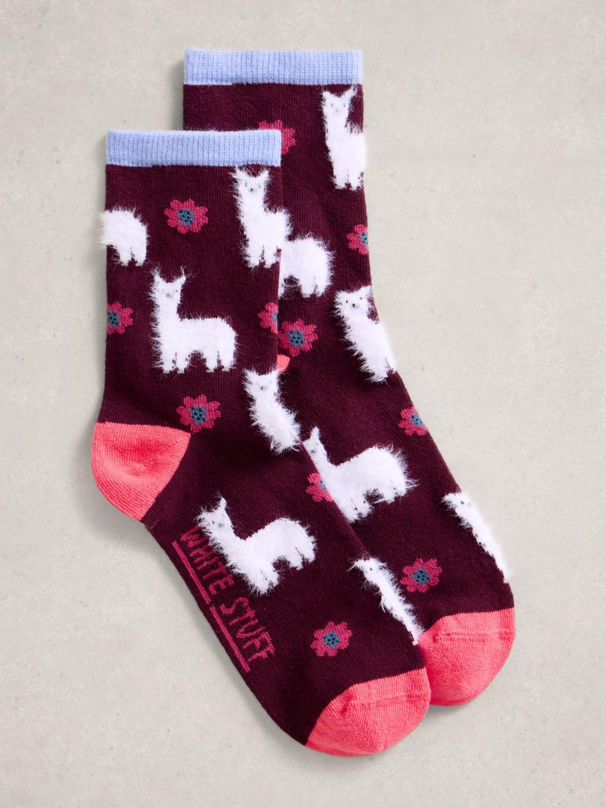 White Stuff Fluffy Ankle Sock in Dark Plum